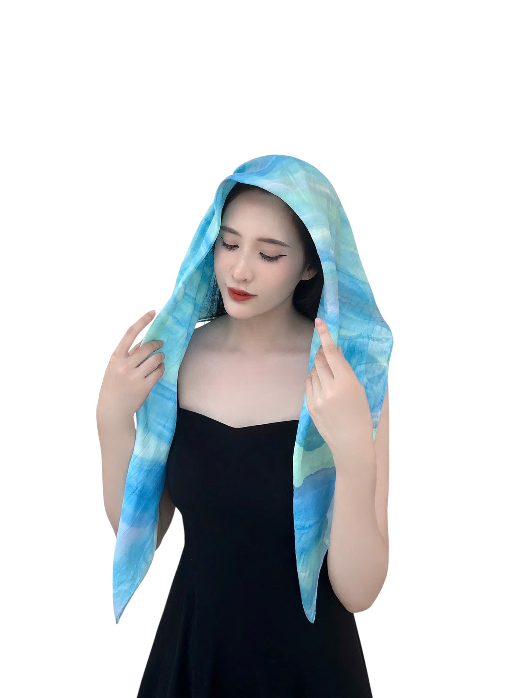 Khăn Lụa Tơ Tằm Vuông – Nhuộm Thủ Công Bằng Phương Pháp Ice Dye/ Tide Dye – Quà tặng Văn Hoá Việt Độc Đáo