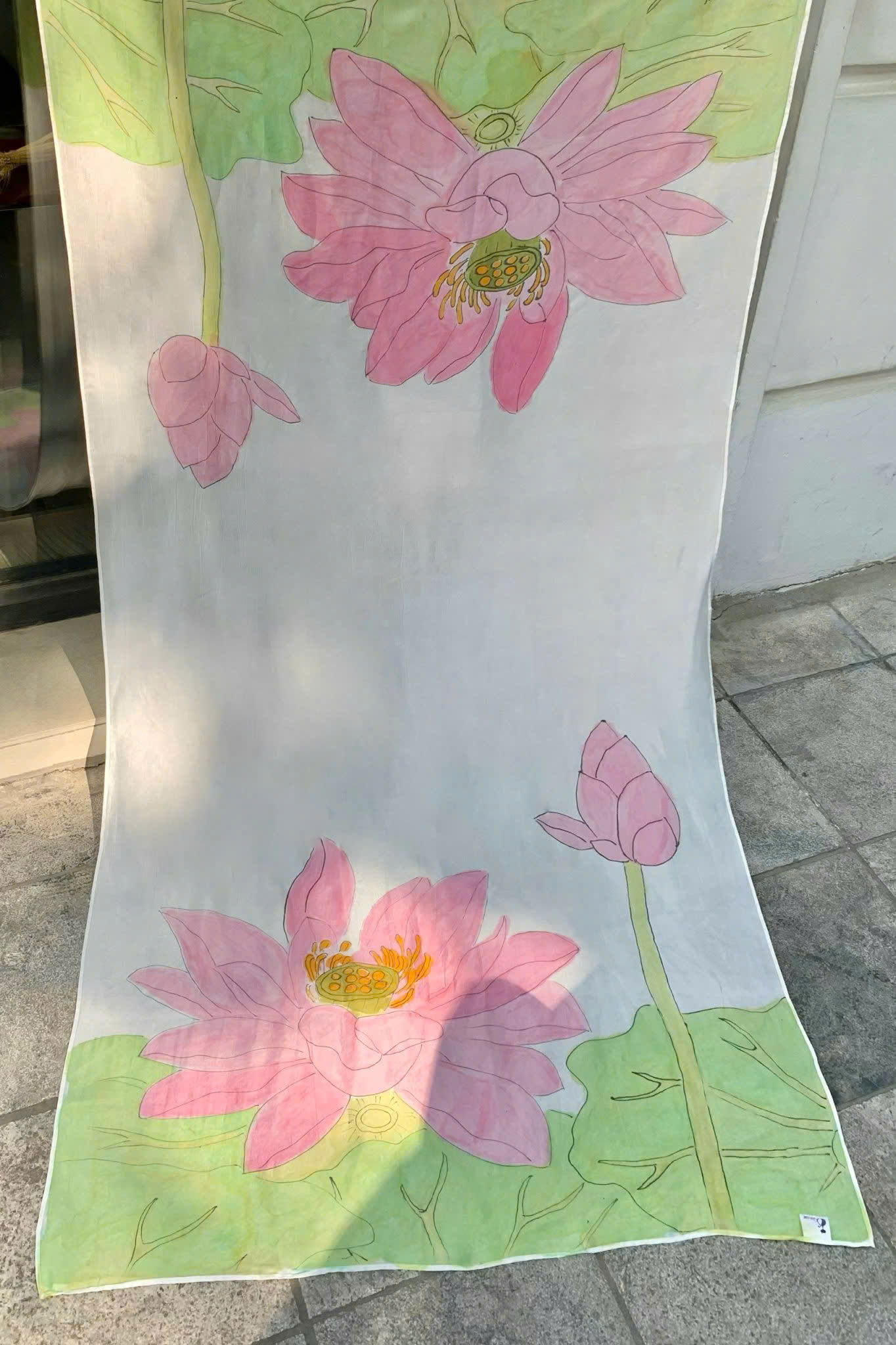 · Họa tiết: Hoa sen hồng trên nền trắng, vẽ tay thủ công tinh xảo, mềm mại, bền màu
