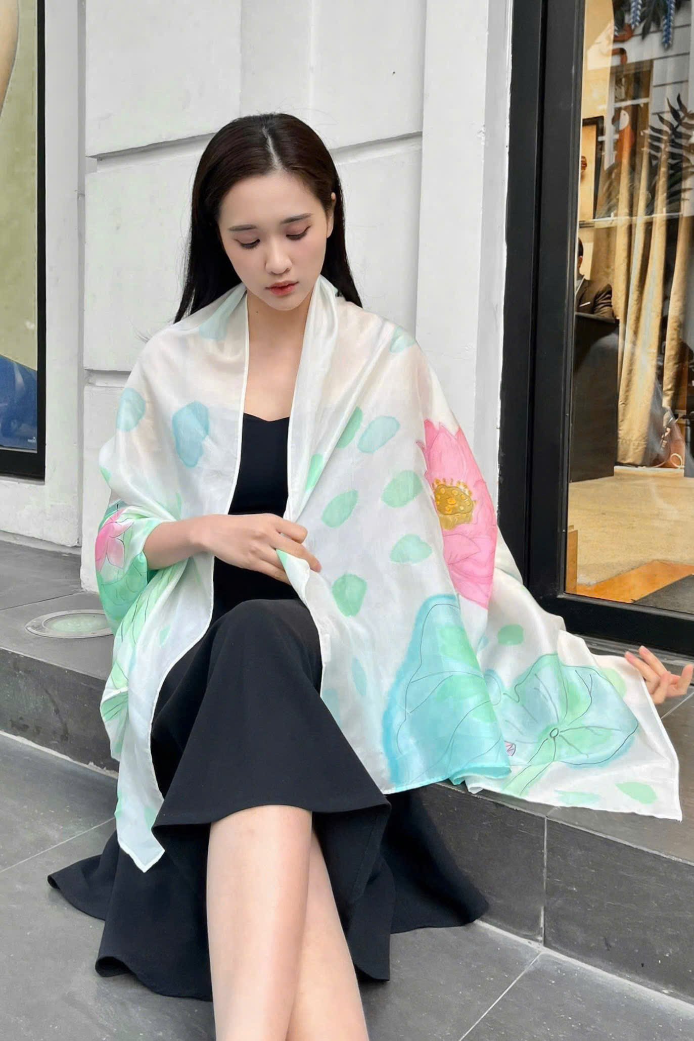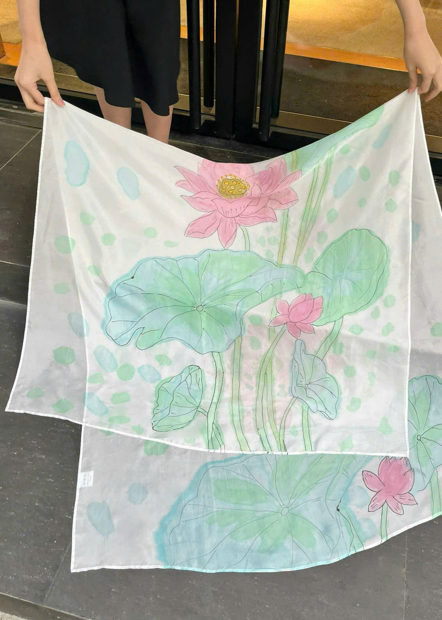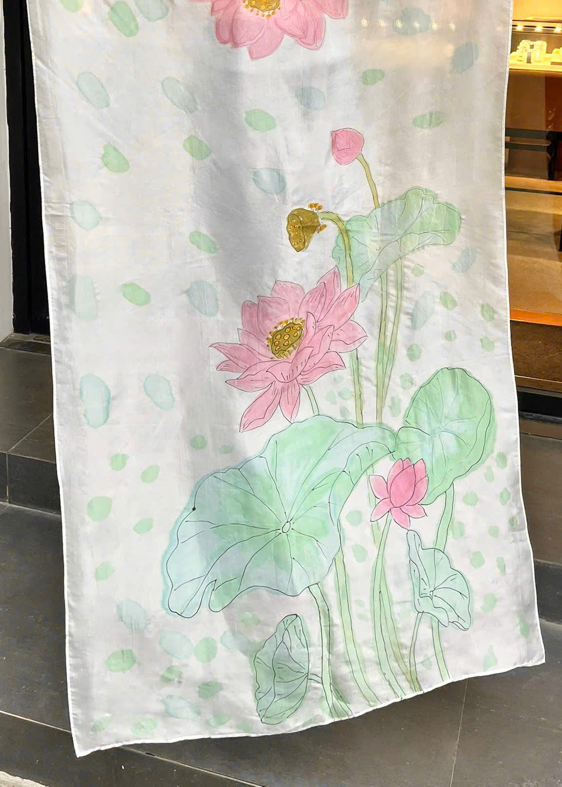 Khăn lụa tơ tằm vẽ tay hoa sen – tinh hoa văn hoá Việt