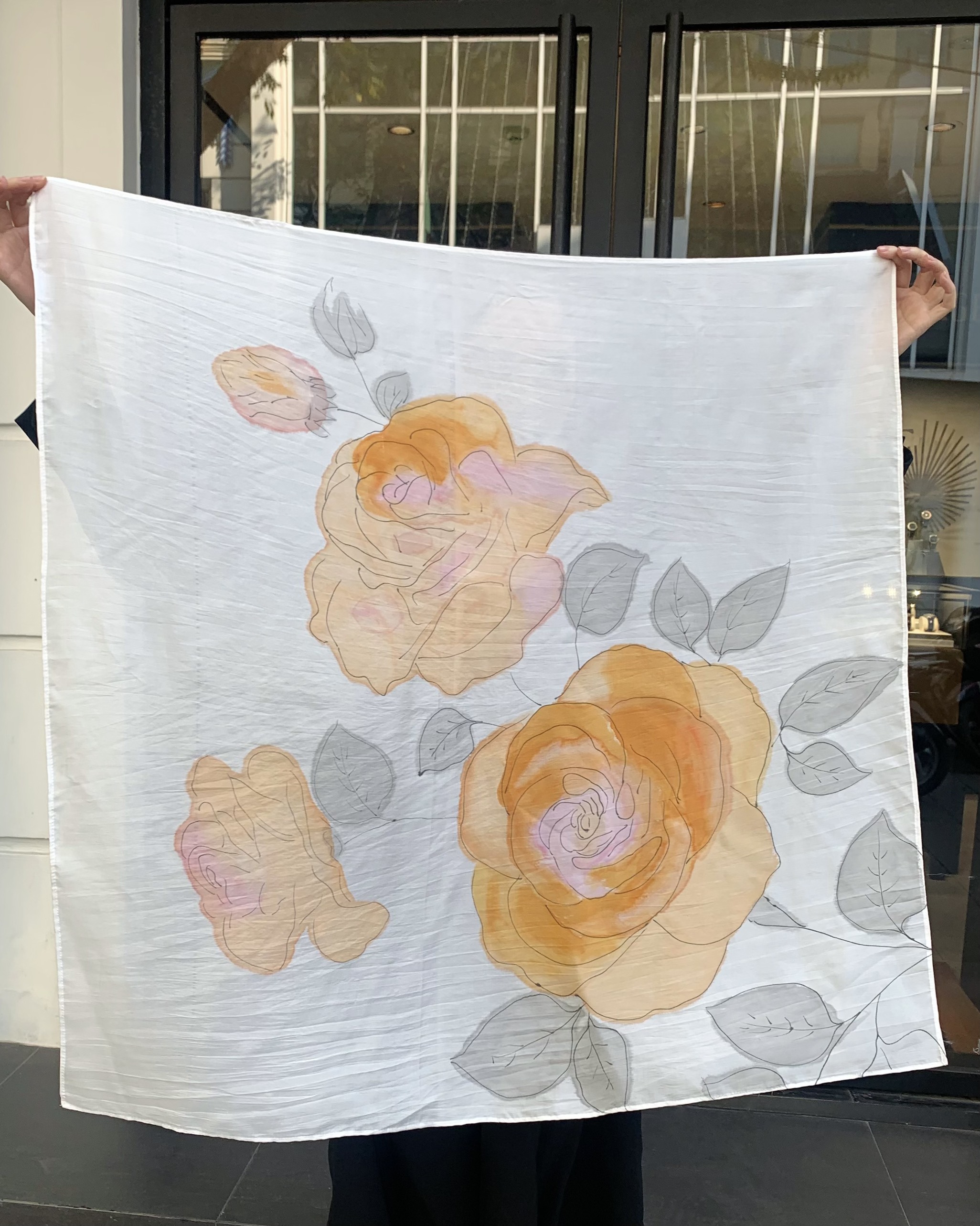 Mẫu khăn lụa vẽ hoa hồng vàng chính là lựa chọn hoàn hảo để tôn vinh sự tinh tế, thanh lịch và lan tỏa tinh hoa lụa Việt.
