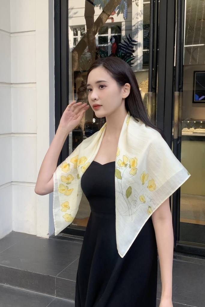 Khăn lụa tơ tằm vẽ tay vuông là sản phẩm cao cấp của Kimcatsilk, mang đến vẻ đẹp tinh tế và giàu giá trị văn hoá. Mẫu khăn lụa vẽ hoa leo vàng được chế tác từ 100% lụa tơ tằm Việt Nam tự nhiên, đảm bảo sự mềm mại, thoáng mát và độ bền vượt trội.