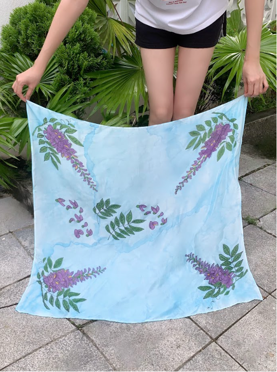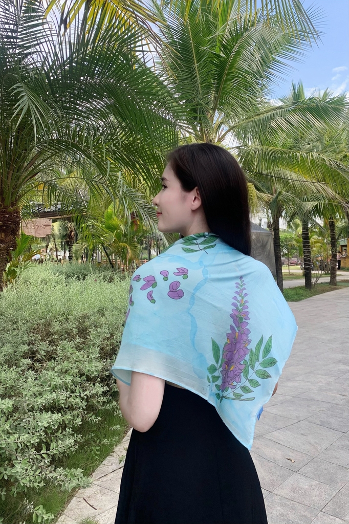 Với sự kết hợp giữa chất liệu truyền thống, bàn tay nghệ nhân và ý nghĩa văn hoá, mẫu khăn lụa vẽ hoa tử đằng tím chính là sự lựa chọn hoàn hảo để lan tỏa tinh hoa lụa Việt.