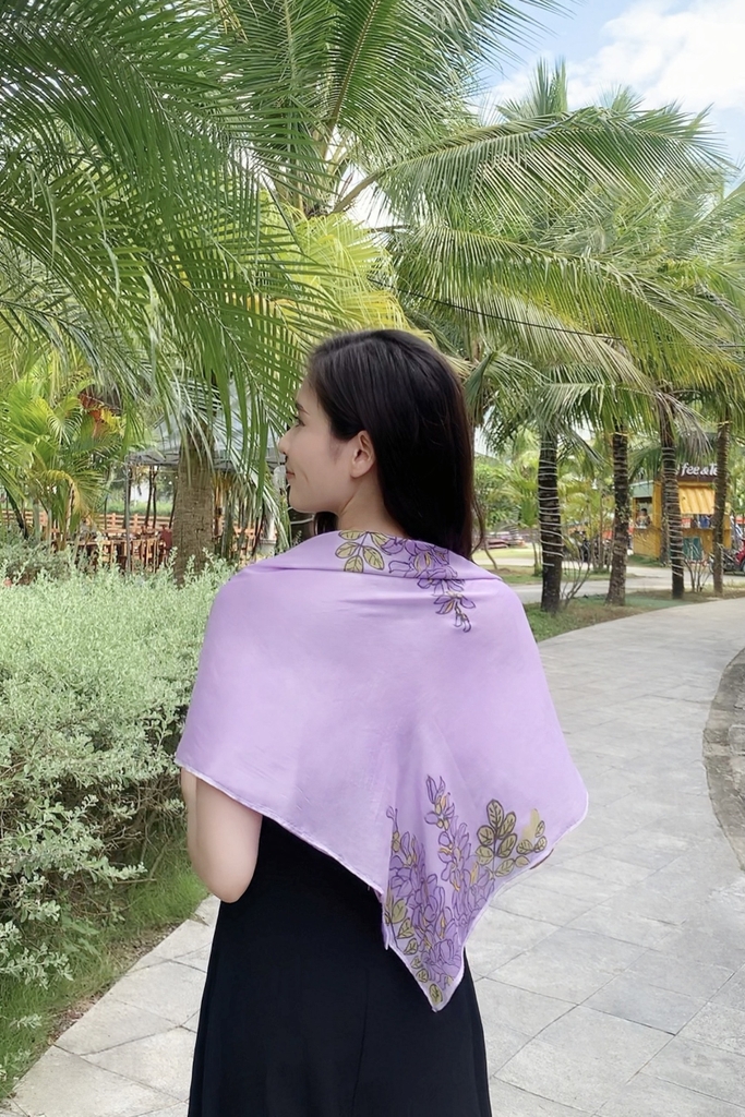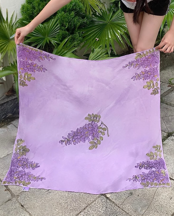 Với sự kết hợp giữa chất liệu truyền thống, bàn tay nghệ nhân và ý nghĩa văn hoá, mẫu khăn lụa vẽ hoa tử đằng tím chính là sự lựa chọn hoàn hảo để lan tỏa tinh hoa lụa Việt.